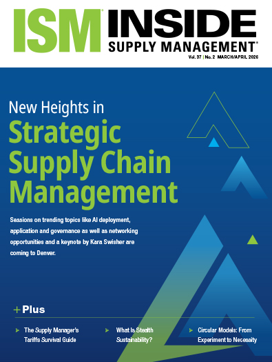 Inside Supply Management® is a leading publication for those within the procurement/sourcing and supply chain profession. Our magazine covers essential news, innovative trends, ISM® PMI® Reports coverage, research analysis, leadership profiles, career strategies and much more.